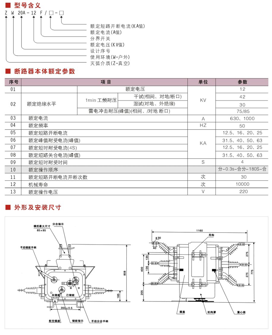ZW20-12F真空斷路器(帶看門(mén)狗PT)